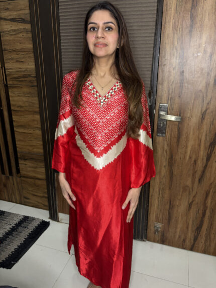 Red Bandhani Printed Embroidered Sharara